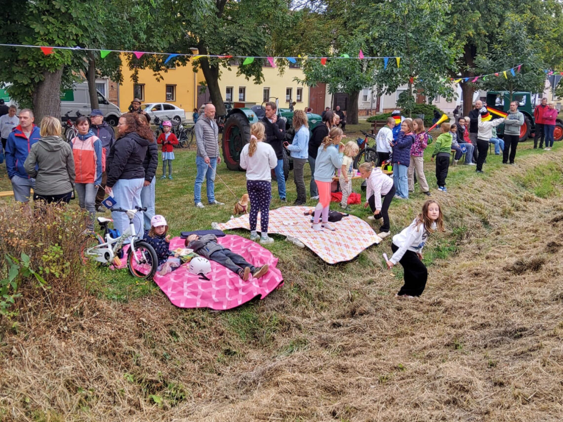 Volksfestähnliche Zustände auf dem Friedrichsauer Dorfplatz, als am 24. August gut 100 Radsportler über die Chausseestraße sausten. (Von den Radfahrern selbst gabs am Ende kaum Fotos.)